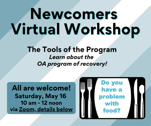 If you’ve been a member for two years or less, or consider yourself a newcomer, then this workshop is for you. Learn more about OA’s program of recovery from eating disorders. Get questions answered. Meet other members — including other newcomers.
